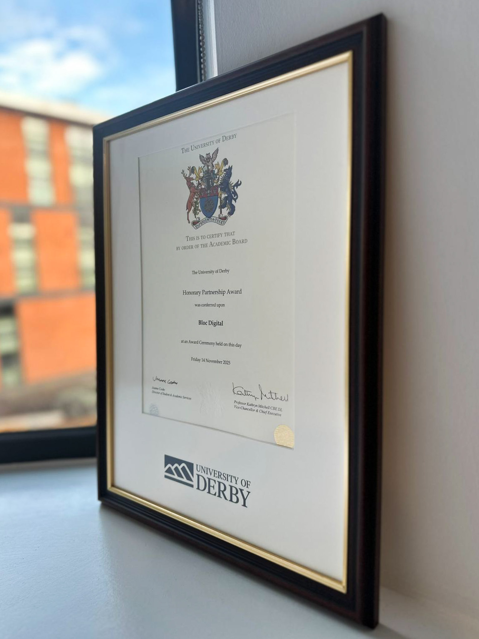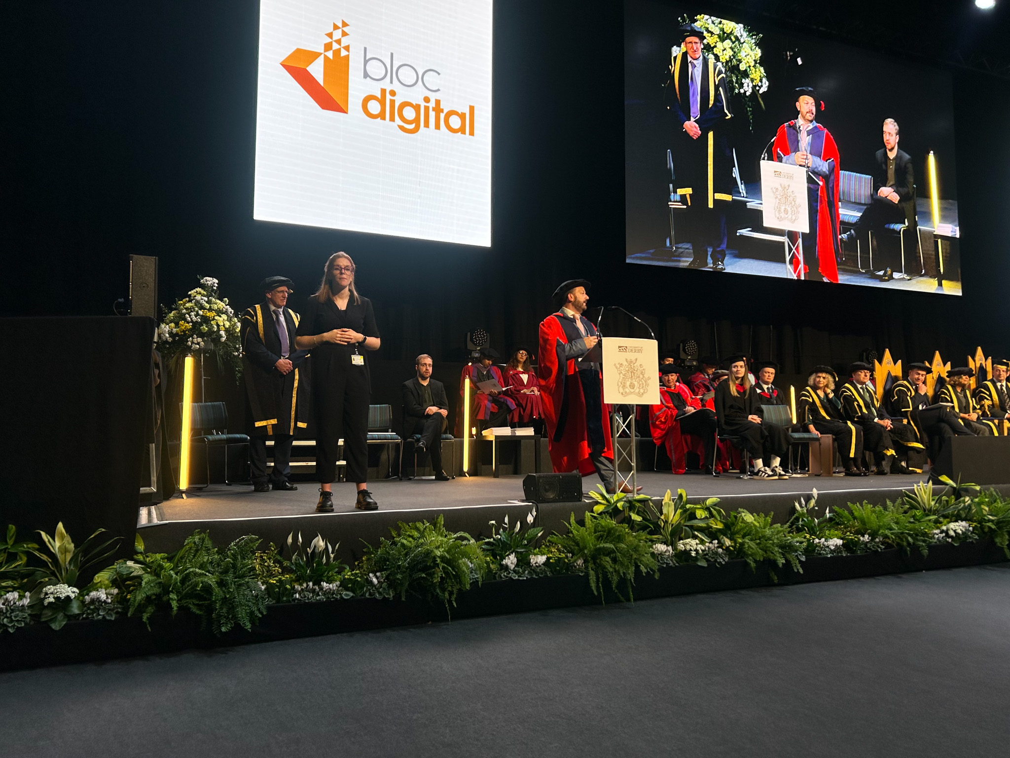 The Honorary Partnership Award was presented at the University’s Winter Graduation Awards Ceremonies 2025, attended by thousands of graduates, families, and industry partners. For us at Bloc, the recognition reflects our ongoing commitment to innovation, education, and meaningful collaboration. As a Derby-based business, we’re proud to receive this recognition and to continue championing talent, technology, and transformation alongside the University of Derby.